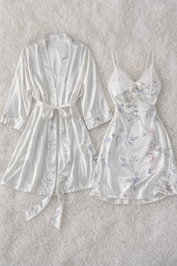 Precio regular ₡ 21.900Femenino y delicado, este conjunto blanco con estampado floral satinado combina lo romántico con lo sensual. ✨ Incluye bata y baby doll -