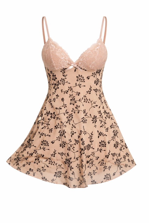 Precio regular ₡ 16.900Este baby doll combina delicadeza y sensualidad. Su parte superior semitransparente está adornada con bordados florales en tonos rosas y verdes, mientras que la falda ofrece un movimiento suave y coqueto. -