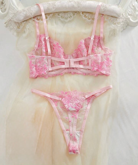 Atrevido y vibrante, captura todas las miradas con su intenso tono fucsia y bordado floral sobre tul translúcido. El sostén realza el busto con un toque romántico, mientras que la tanga a juego enmarca tus curvas...Precio regular ₡ 15.900