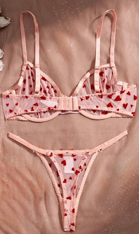 Este set de lencería en tono rosa pastel con estampado de corazones rojos es perfecto para quienes aman los detalles coquetos y divertidos. Su diseño delicado combina suavidad, transparencia ligera y un estilo romántico que resalta...Precio regular ₡ 15.900 -