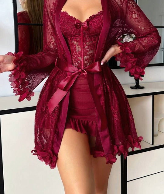 Seductor y sofisticado, este conjunto está diseñado para resaltar la feminidad con elegancia. Detalles de encaje floral y transparencias que ofrece un ajuste perfecto, mientras que la bata complementaria añade un toque romántico con aplicaciones de...Precio regular ₡ 21.900 -