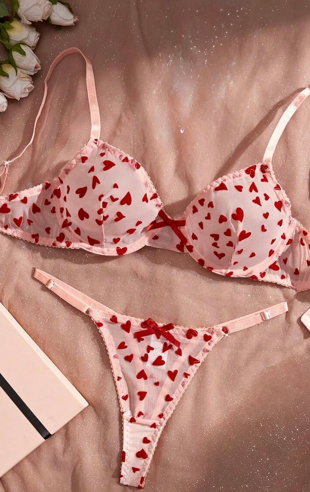 Precio regular ₡ 15.900Este set de lencería en tono rosa pastel con estampado de corazones rojos es perfecto para quienes aman los detalles coquetos y divertidos. Su diseño delicado combina suavidad, transparencia ligera y un estilo romántico que resalta... -
